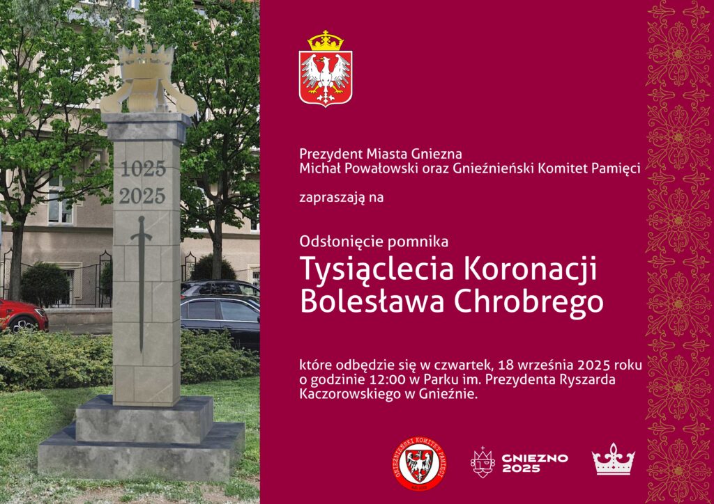 Prezydent Miasta Gniezna Michał Powałowski oraz Gnieźnieński Komitet Pamięci zapraszają na odsłonięcie oraz poświęcenie Kolumny Tysiąclecia Koronacji Bolesława Chrobrego, które odbędzie się w czwartek, 18 września 2025 roku o godzinie 12:00 w Parku im. Prezydenta Ryszarda Kaczorowskiego w Gnieźnie.
